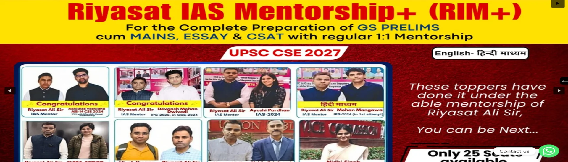 What Riyasat Ali Sir does is that more than 50% of the questions taught by him are asked directly in UPSC CSE Main. Every year at least 10 to 15 Qs in each CSE Main GS papers from his IAS Mentorship Program